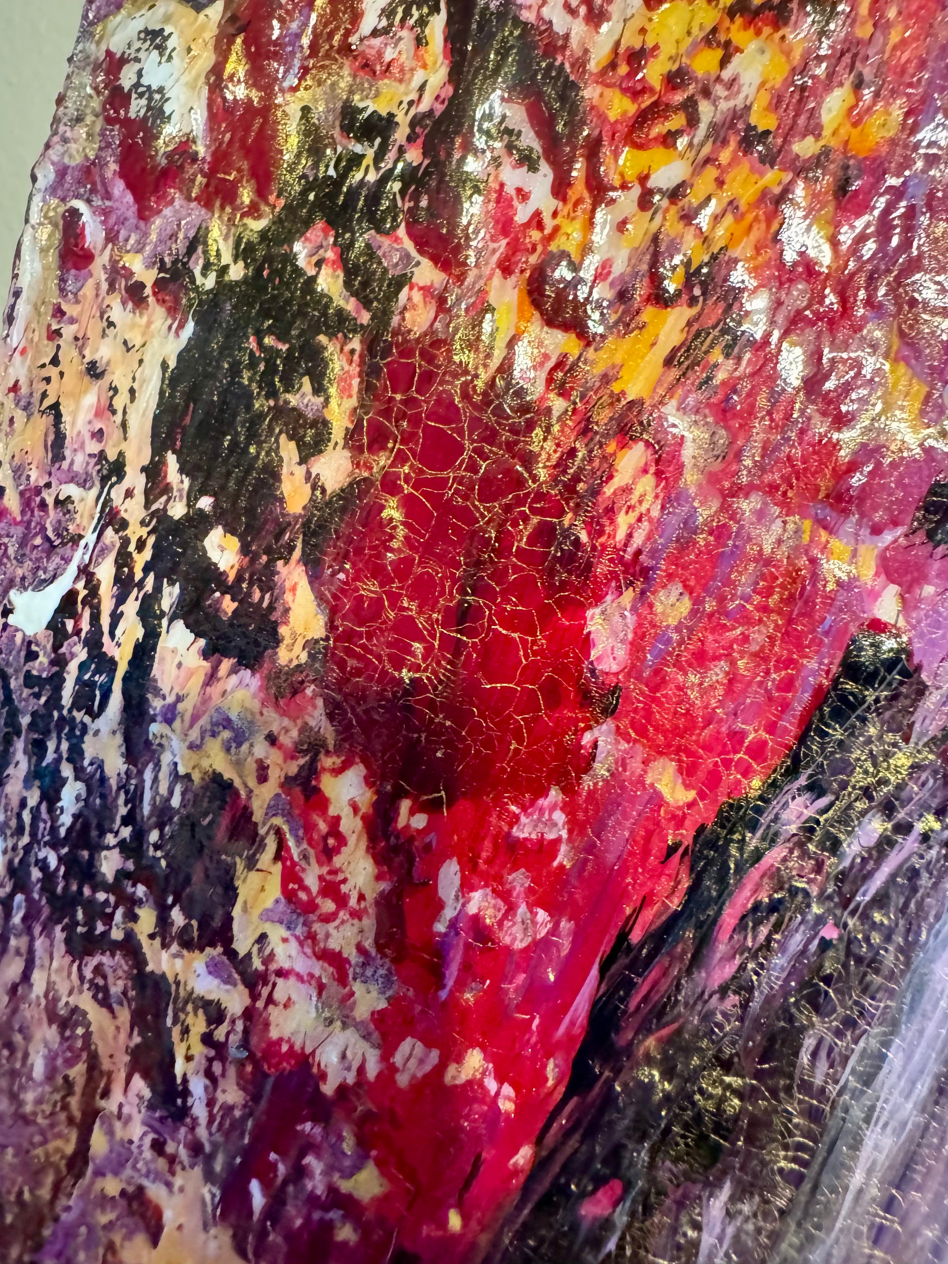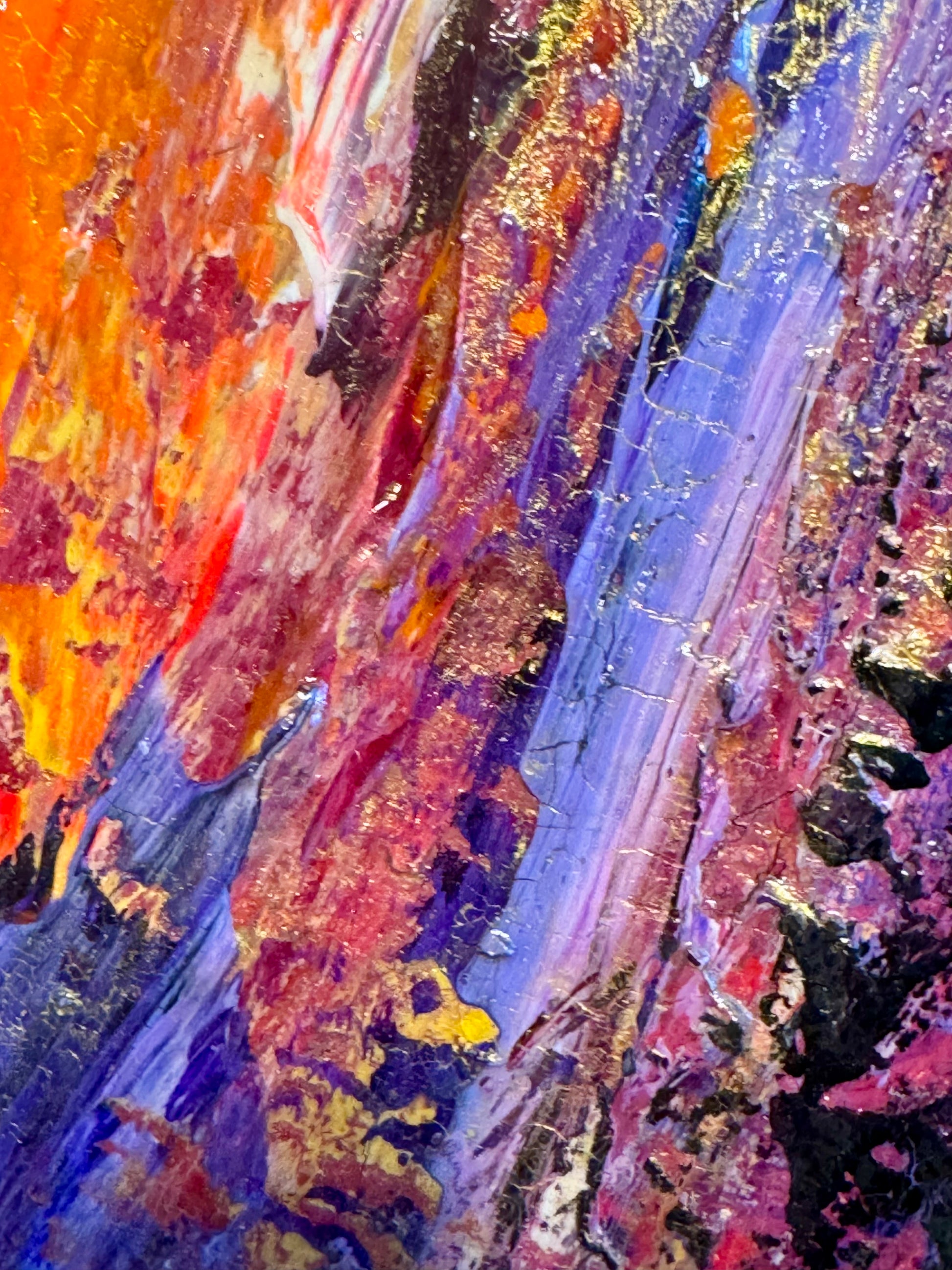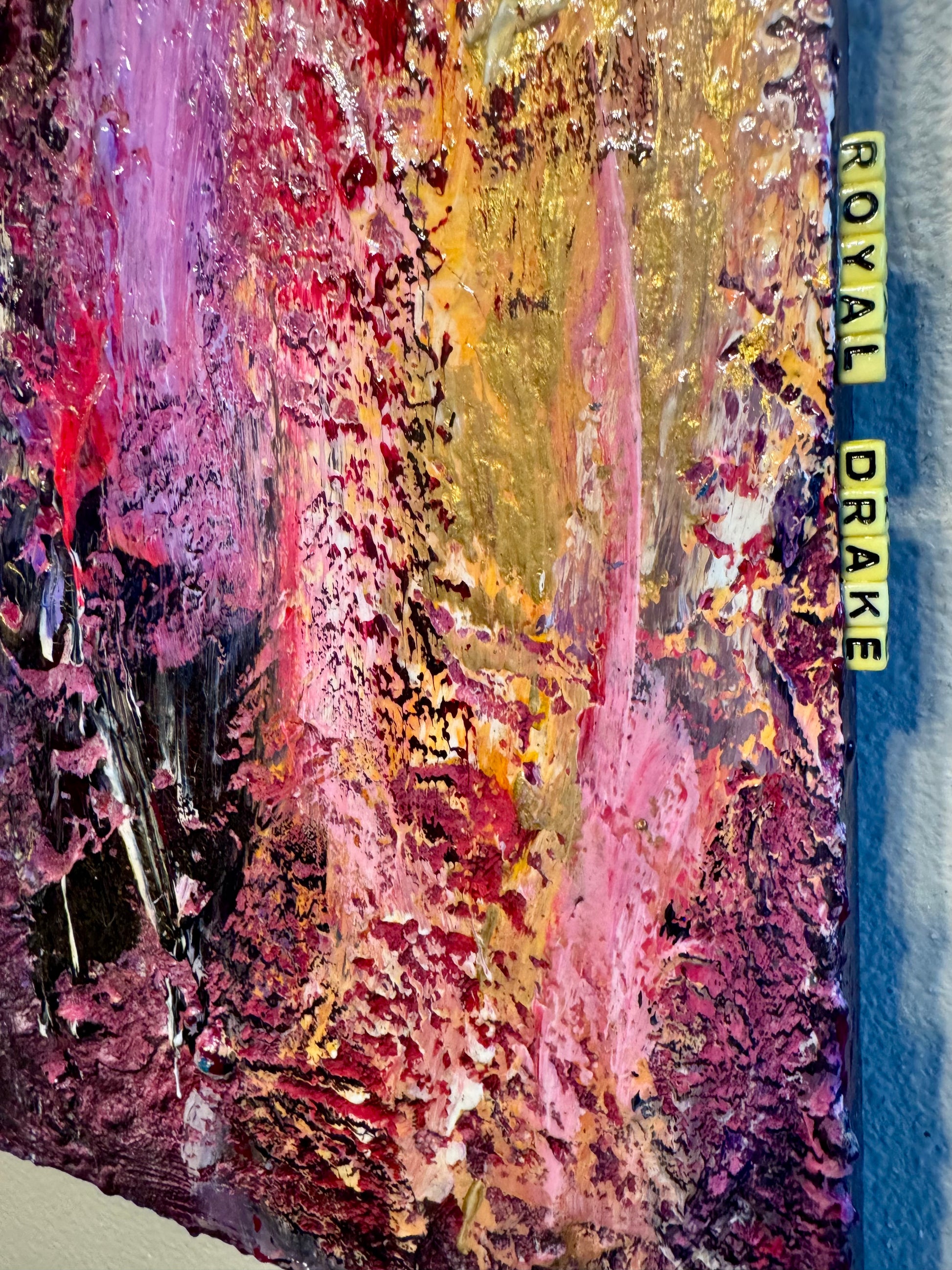 Royal Drake is an ode to the enduring regality of high-fantasy’s most illustrious houses, where legacy and honor converge in vivid splendor. This piece weaves a tapestry of deep purples and majestic golds, accented by bold flashes of crimson and bright violet, evoking the fire and passion of noble bloodlines. Each textured layer tells a story of tradition, resilience, and power, capturing the spirit of dynasties that rule with grace and determination.