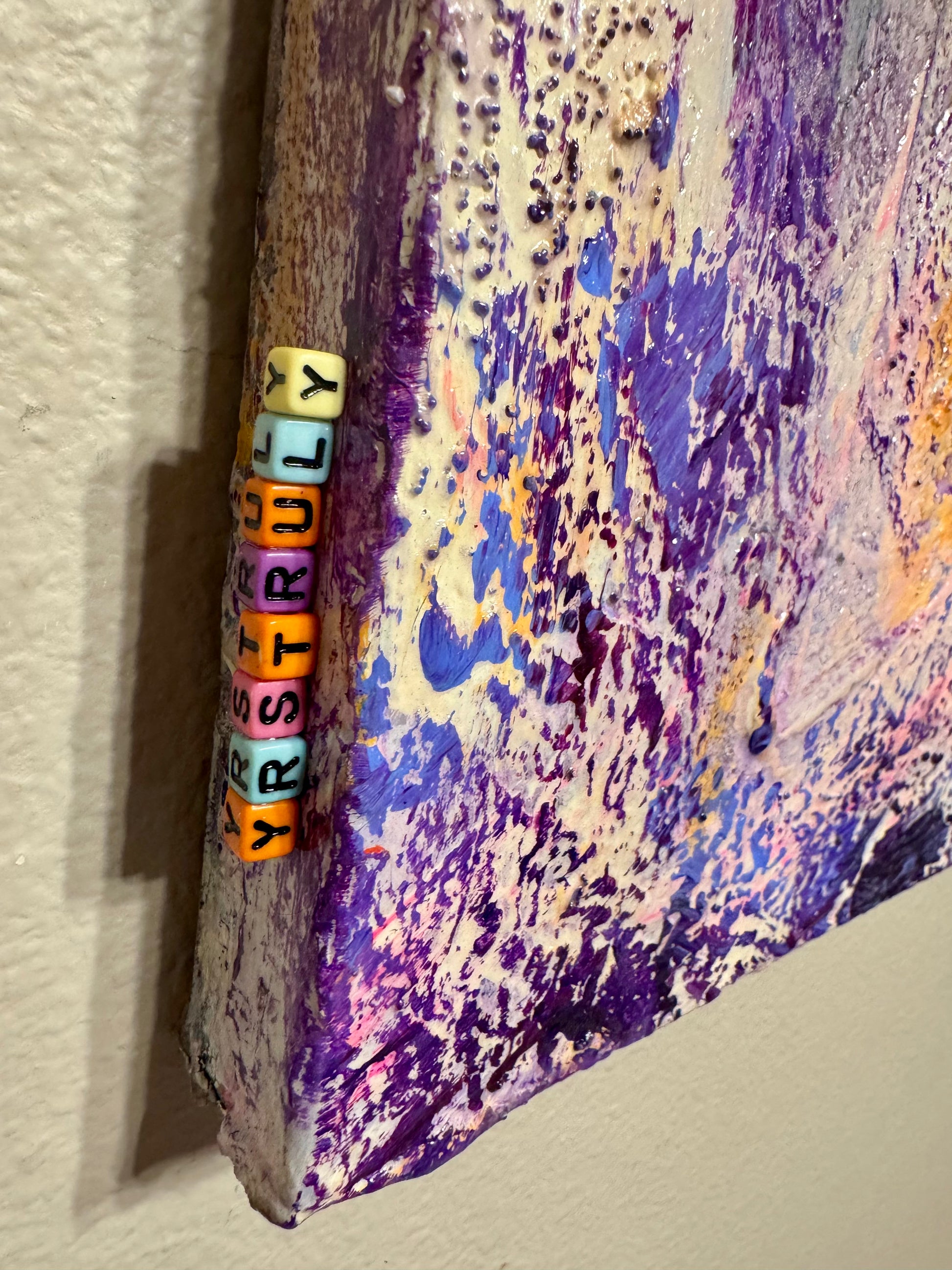 Sandy Drake – 24x36 acrylics, mixed media on heavily textured canvas