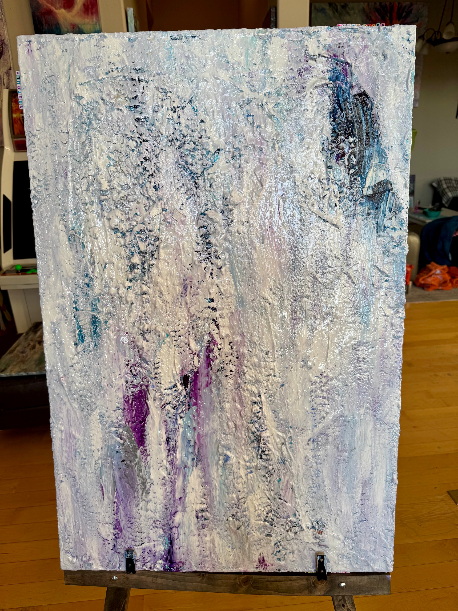 Step into the stark, majestic beauty of the wild North with White Drake, a textured 24x36 painting by gabriel LTA. Inspired by the icy landscapes and unforgiving nature of snowy fantasy realms, this piece evokes a sense of power and stillness. Layers of frosty whites and cool blues are interwoven with subtle hints of violet and silver, creating a shimmering, snow-laden effect that reflects both serenity and danger.